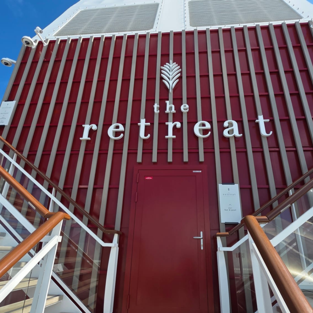 The Retreat is Celebrity’s exclusive ship-within-a-ship experience for suite guests. It includes a private lounge with complimentary specialty dining for breakfast and lunch, a private sundeck with premium amenities, priority embarkation and disembarkation, and dedicated concierge service.