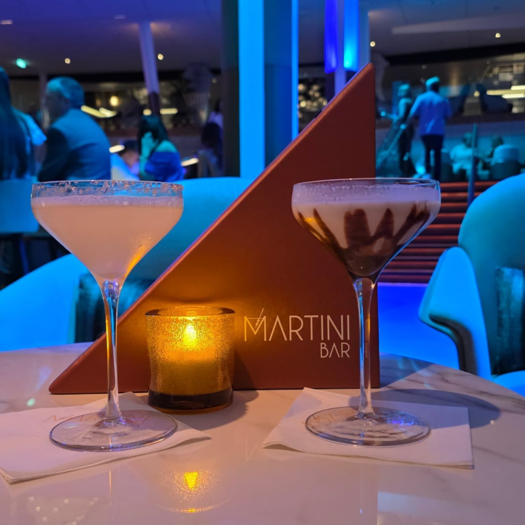 The Martini Bar sits at the heart of the Grand Plaza and serves as the social centerpiece of the ship. This isn’t your typical cruise ship bar with sweet, frozen concoctions. The bartenders here are mixologists who take pride in their craft, creating both classic martinis and innovative signature cocktails. The bar features Celebrity’s famous ice-top where drinks are served on a bed of crushed ice, keeping them perfectly chilled throughout your conversation. I’ve watched these bartenders juggle shakers and engage guests with genuine enthusiasm—it’s entertainment and excellent drinks rolled into one. The Grand Plaza’s open design means you’re always in the center of the action, making it perfect for people-watching and impromptu celebrations.